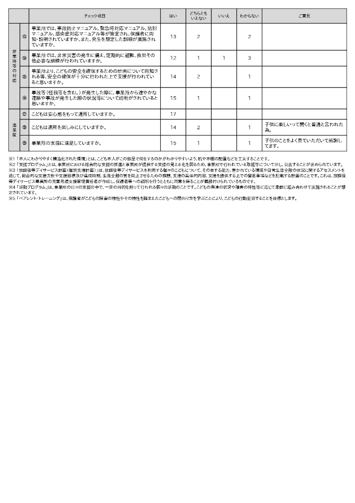 暴風警報が発令される前でも、台風の中心位置、進行速度や方向・気象状況や戸外、施設までの道のりの状況等から判断をして、安全に帰宅させ得ると認めた場合には、デイを中止して自宅に帰宅させることがあります。(大雨・洪水・大雪も同様)